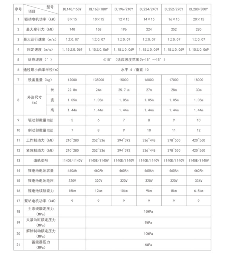 DL系列防爆鋰電池單軌吊機(jī)車,是一種以鋰電池為動(dòng)力源,電力、油泵驅(qū)動(dòng)電機(jī)繼而帶動(dòng)機(jī)車運(yùn)行的煤礦井下輔助運(yùn)輸設(shè)備。其運(yùn)行軌道采用德國(guó)工業(yè)標(biāo)準(zhǔn)的1140E型或I140V型工字型鋼,由鏈條柔性地固定于巷道頂部,機(jī)車運(yùn)行承載輪卡入工字鋼兩側(cè),無(wú)脫軌、掉道現(xiàn)象,制動(dòng)停車是靠制動(dòng)器彈簧夾緊軌道腹板實(shí)現(xiàn),動(dòng)作方式為失效制動(dòng),運(yùn)行安全、便捷更高 效。